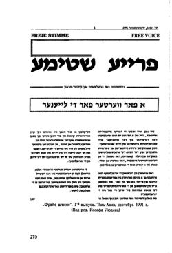 [[Файл:Fshtimme.JPG|thumb|250px|"Фрайе штимме". 1-й выпуск. Тель-Авив, сентябрь 1991 г. (Под ред. Йосефа Людена]]